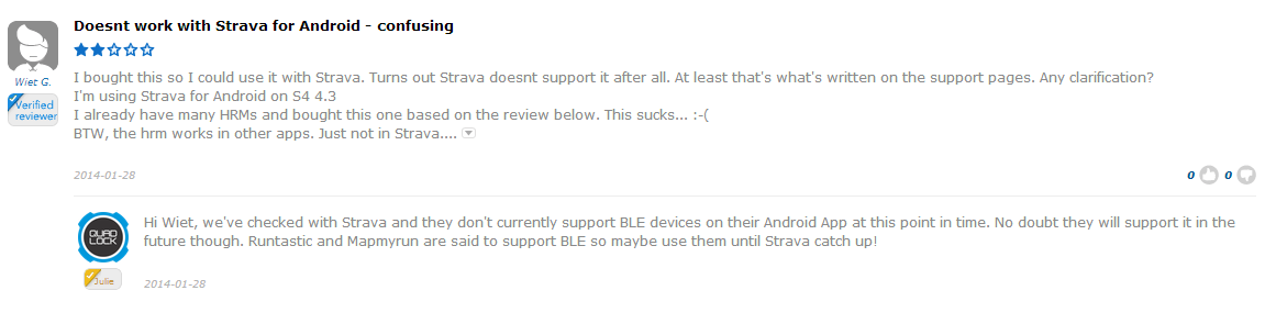 Example of how the comment looks in the reviews widget (credit: Quadlock)