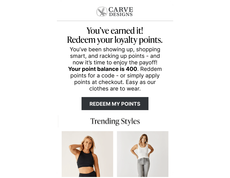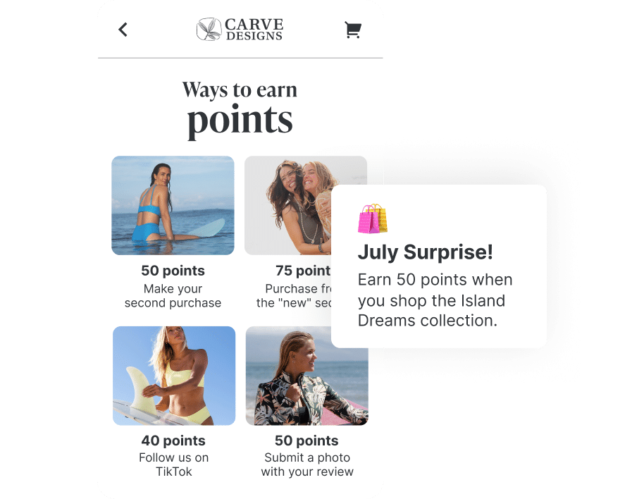 In 2024, Carve Designs wanted to engage existing customers more, and ideally with the loyalty program rather than through regular discounts. There was a clear need to reward existing loyalists and expand the reach of their program.