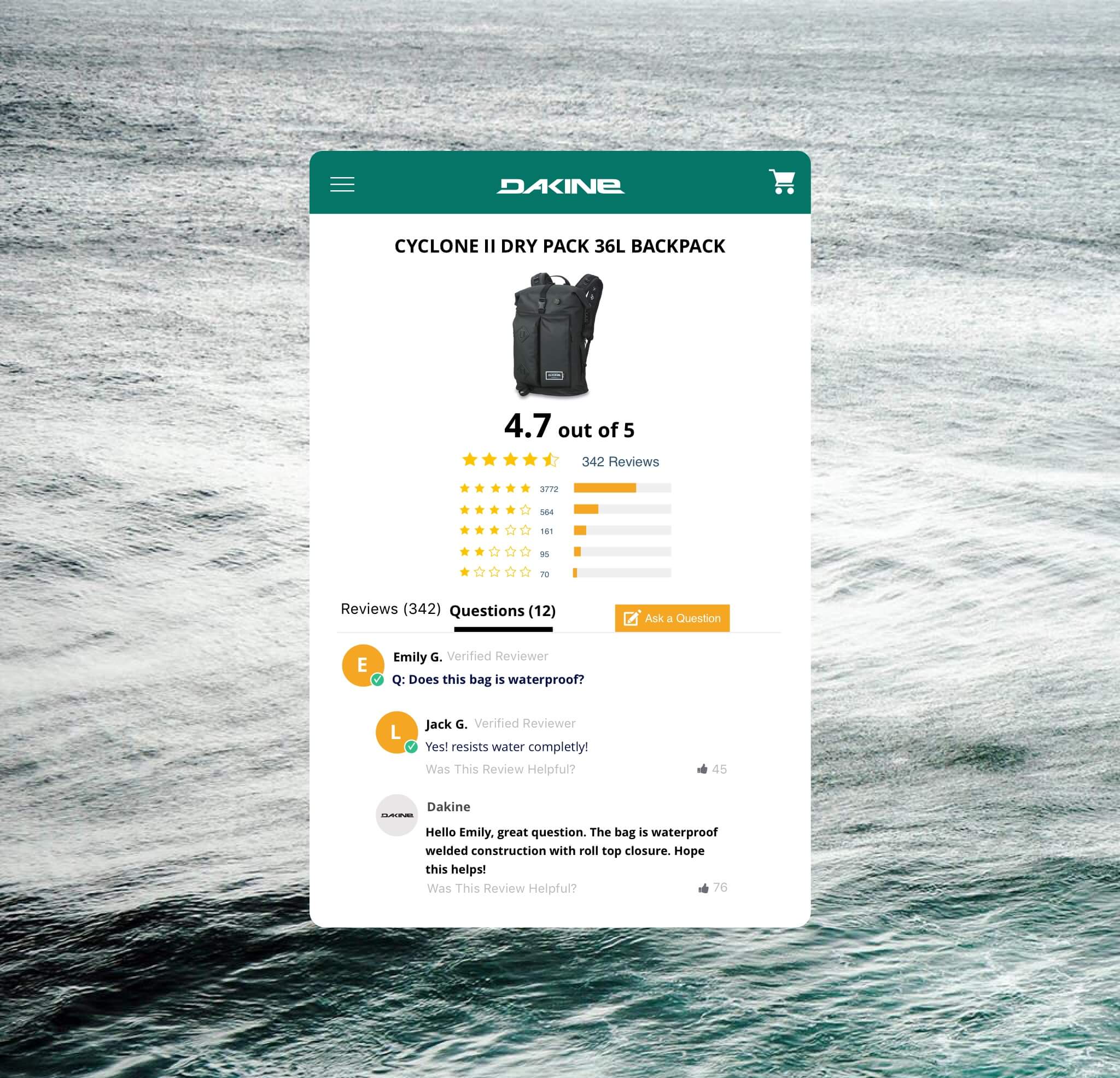 Dakine long understood the power of brand communities, and the need to display customer reviews on their site to build consumer trust and boost sales. They searched for a solution that could kick start their review generation efforts, engage customers throughout the buyer journey, and guide hesitant shoppers to checkout.