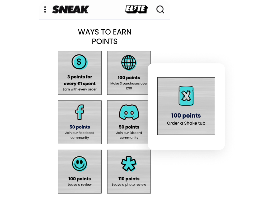 Sneak previously relied on a custom-built loyalty solution tied to a single developer, limiting their ability to scale and enhance customer engagement. As they expanded beyond energy drinks, they needed a better way to drive cross-sell purchases.