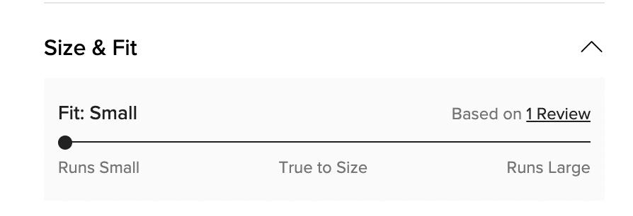 - Size & Fit section built from user reviews