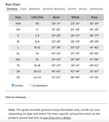 - Full size charts and measurement guides