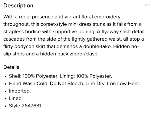 - Detailed fabric and wearability descriptions
