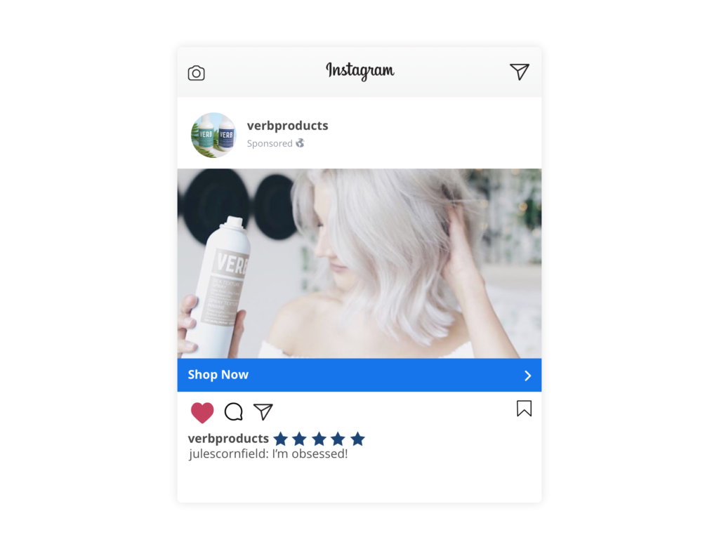 If you’re already collecting customer reviews, photos, and videos, don’t just stick them on your product pages and call it a day — there’s so much more your hard-earned content can do for your brand. Maximize engagement on your Facebook and Instagram ads by featuring UGC directly inside the ads themselves. A joint Facebook-Yotpo case study found that review-based ads have a 4X higher CTR, and a 50% drop in both CPA and CPC.