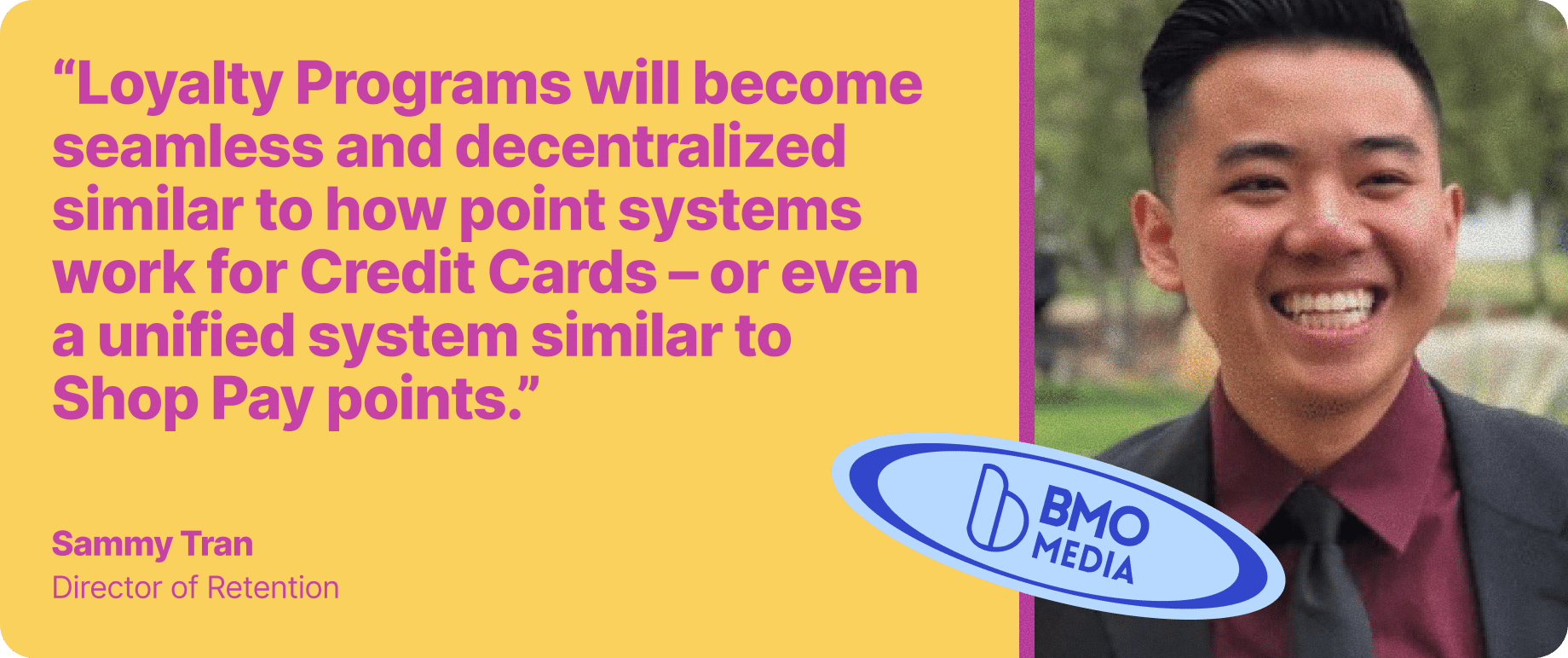 The future doesn’t look like a dozen disconnected programs. It looks more like a network: decentralized, portable, and shared. Points that can move across brands, not just channels. Status that follows you from one retailer to another. Rewards that accumulate everywhere you shop, redeemable anywhere you choose.