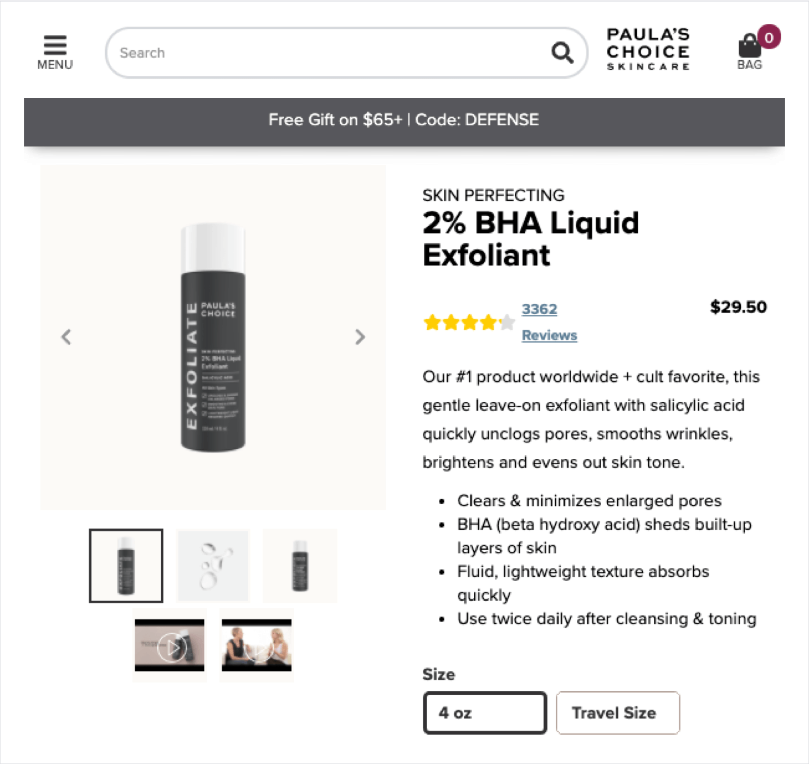 A lot of brands make the mistake of focusing on the features of their products, without explaining how those features will benefit the customer. Adding that extra layer of messaging can go a long way toward persuading a consumer to purchase from your store. See this example from Paula’s Choice: