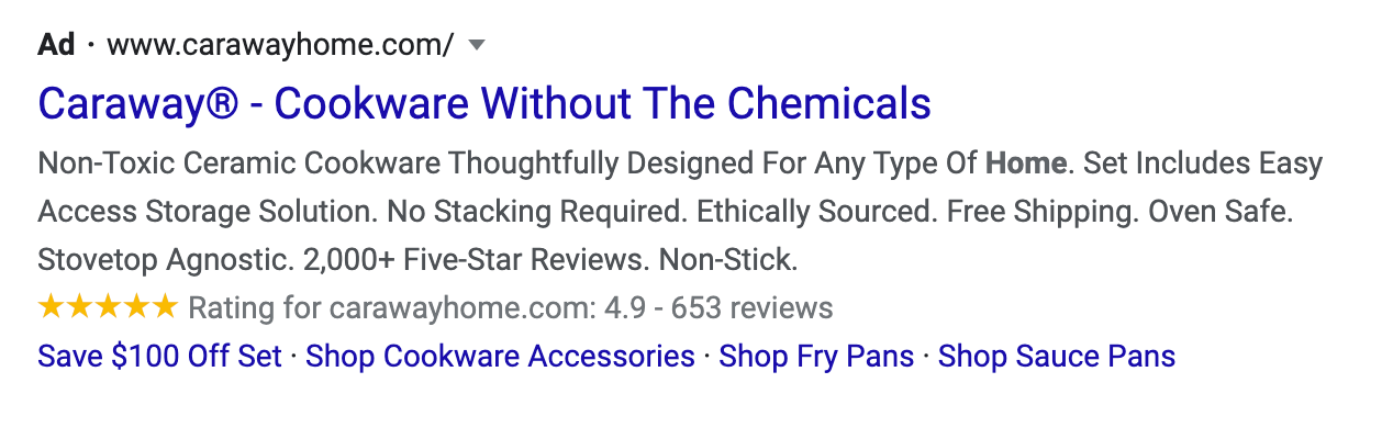 Pour une marque d’ustensiles de cuisine modernes Caraway Home, les avis 2-en-1 sont désormais un élément essentiel de leur stratégie Google.