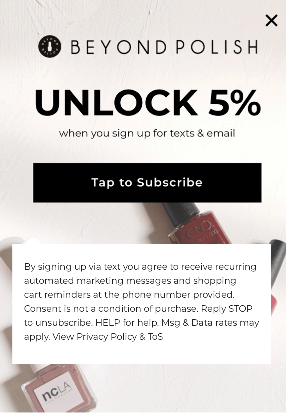 Clearly communicate the strict SMS opt-in and opt-out policies you stand by, how you will be using their phone number, and why their private information will be safe with you to really create an aura of transparency and gain their trust, which will ultimately lead to higher opt in rates.