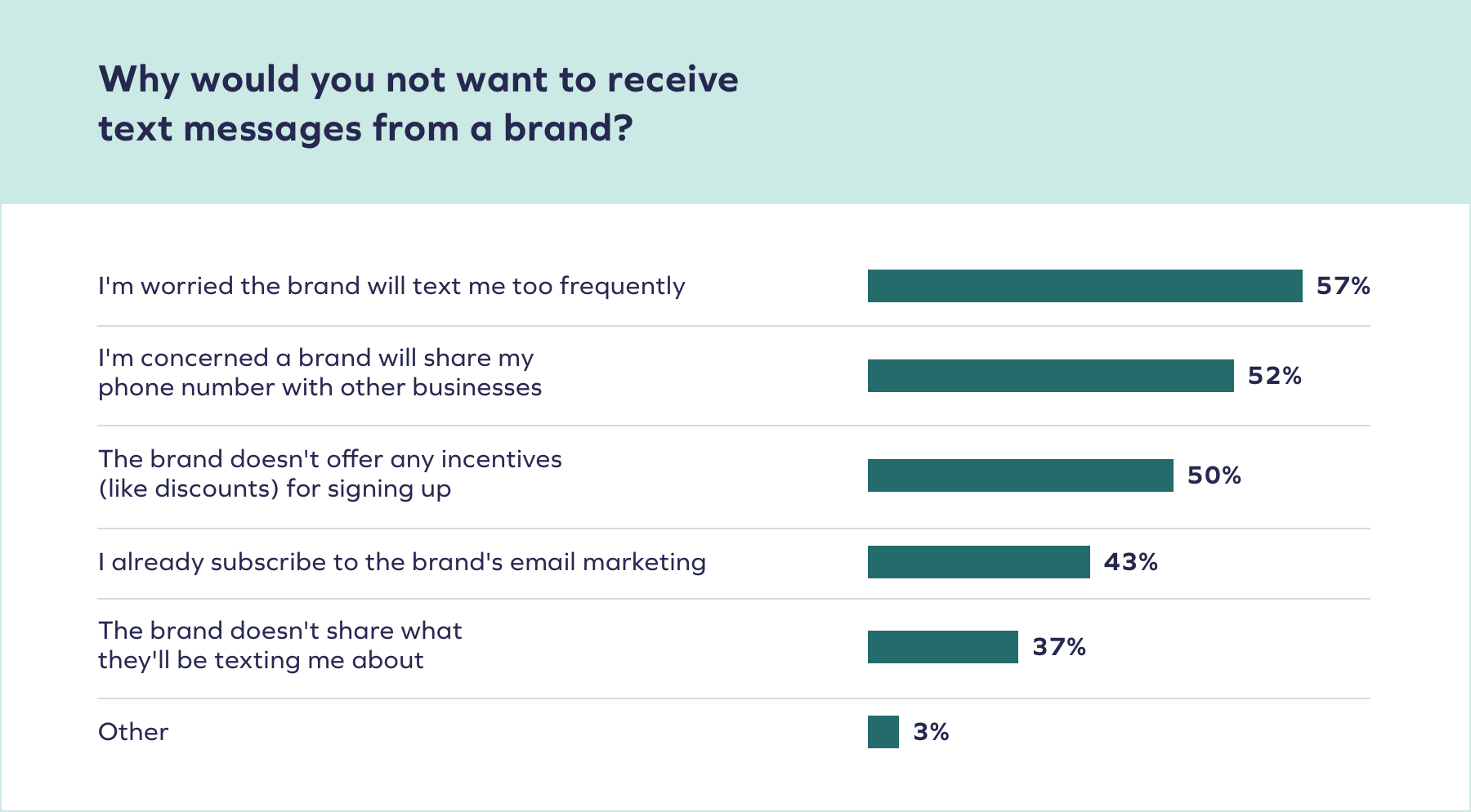 For shoppers who are still on the fence, there is an opportunity for brands to provide clear direction on the privacy and security measures you have in place. Your list might be built for TCPA, CTIA, and GDPR compliance, but the average consumer might not know what that means.