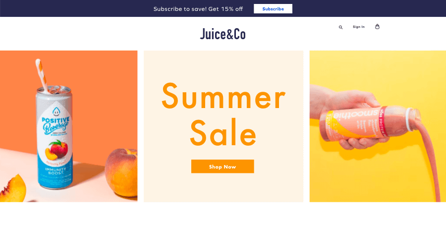 We recommend that you include product imagery in the banner and use discount-forward language to make sure your customer base understands that by subscribing they will get more. Your banner can highlight that customers will save with a subscription or emphasize the ease of the subscription experience.